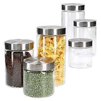 6piece Bera storage jar set with stainless steel lid, silver, 800 ml 1.2 l 1.7 l