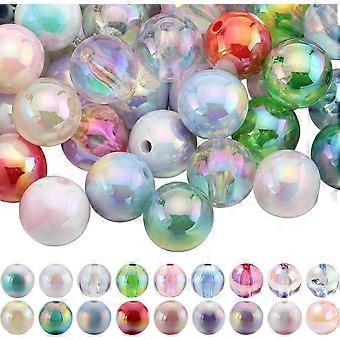 72Pcs 18 Style UV Plating Rainbow Iridescent Acrylic Beads Round Mixed Color 15~16x15~16mm Hole: 2.7~3mm 4pcs/style