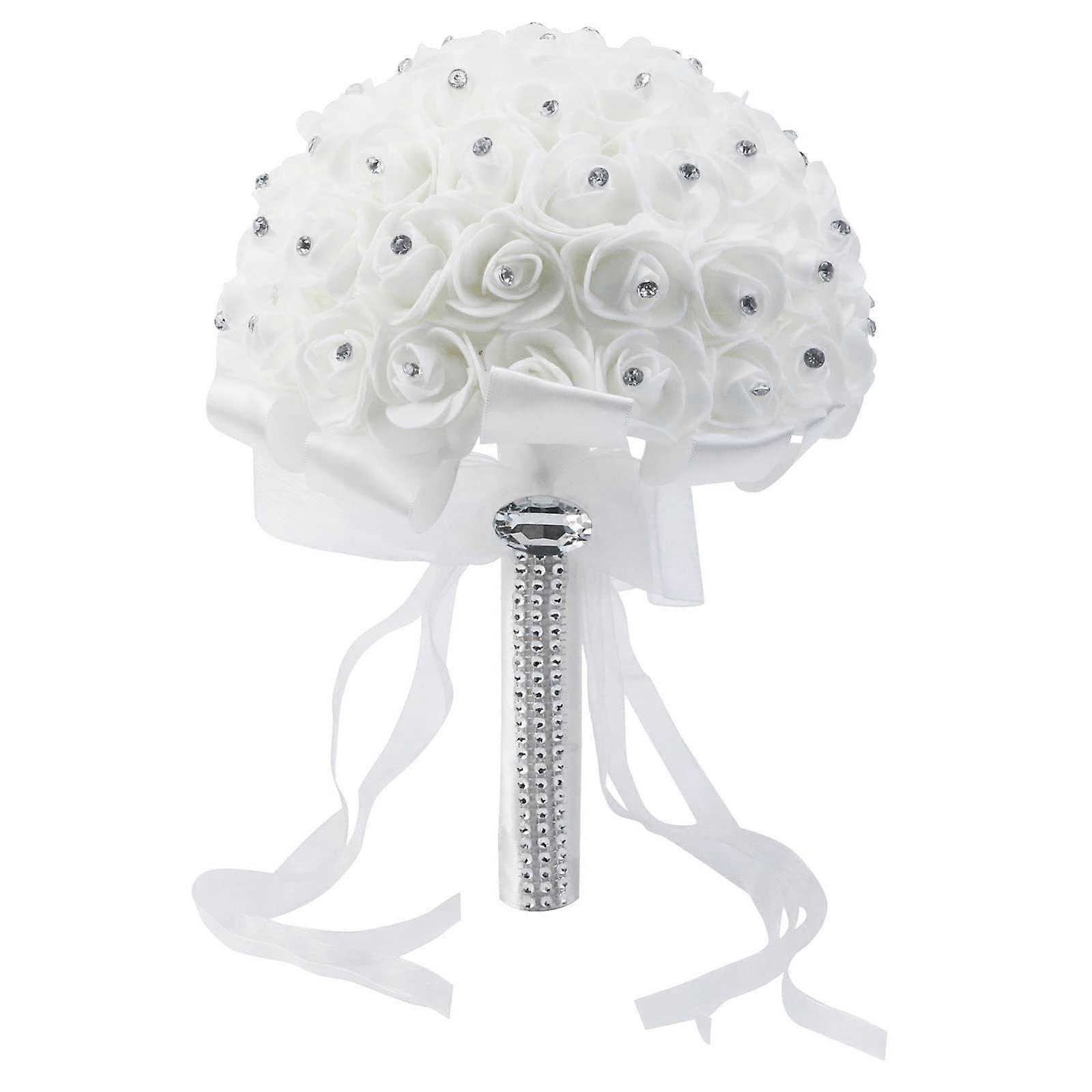 7.5 Inch Rhinestone Bridal Bouquet - Silk Wedding Flowers with Ribbon Accents for Elegant Bridal Arrangements
