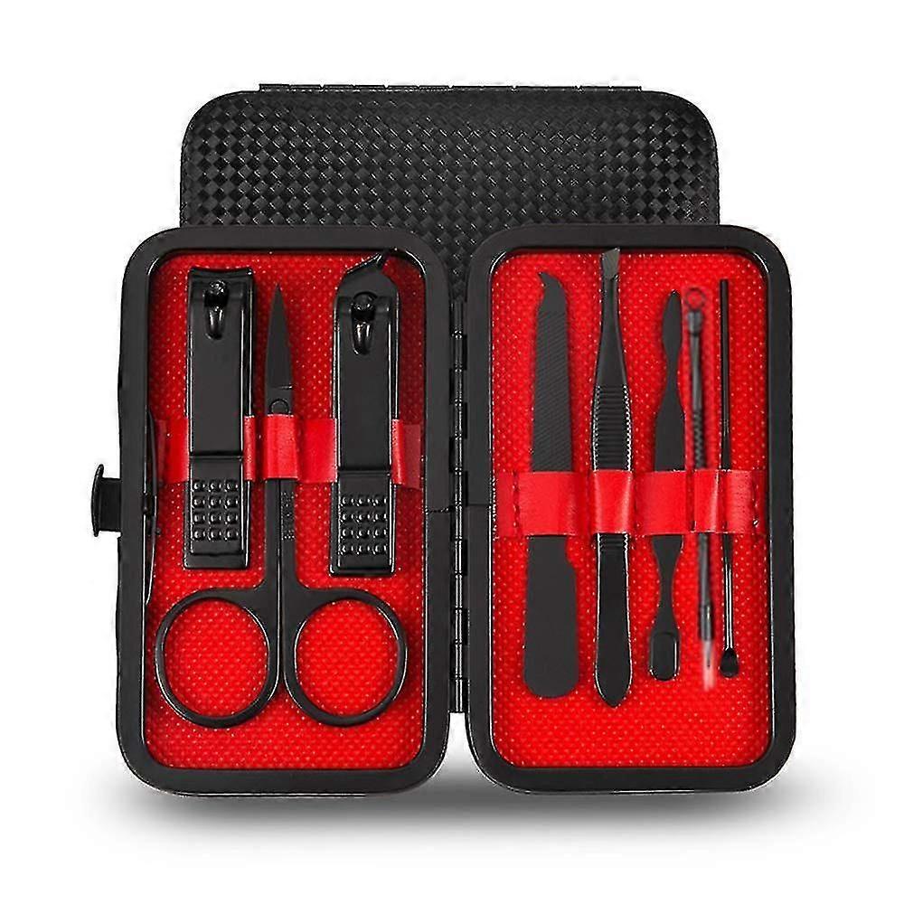 8pcs Manicure Set, Stainless Steel Grooming Kit Nail With Black Pu Leather Case For Women Man