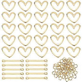 80pcs 3Styles Real 18K Gold Plated Links Brass Heart Links Rings Stick Strip Bar Links with Jump Rings