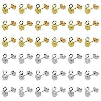 80pcs Gold Plated Stud Earrings Round Ball Post with Loop for DIY(14K Gold,Silver)