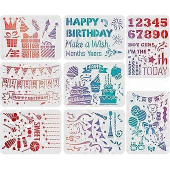 8pcs Bithday Party Drawing Painting Stencils Templates Bithday Theme Templates Decoration Happy Bithday Drawing Stencil