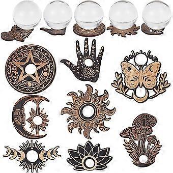 8Pcs Planchette Wooden Mini Crystal Sphere Display Stand Crystal Holder Mushroom Palm Moon Butterfly Witch Stuff Wiccan Small Tray Altar Tarot Decor W