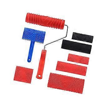 8pcs Wood Grain Painting Tools Set Empaistic Grain Pattern Reusable Texture Wall Painting Roller for Patio Floor Wallpaper