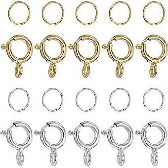 925 Sterling Silver Spring Ring Clasps with 925 Open Jump Rings Platinum & Golden 7x6x1mm Hole: 1.5mm