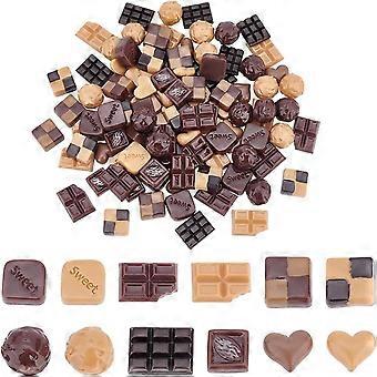 96Pcs 12 Styles Chocolate Resin Cabochons Artificial Food Chocolate Imitation Flatback Chocolate Resin Sets Miniature Snacks Chocolate Decoration for