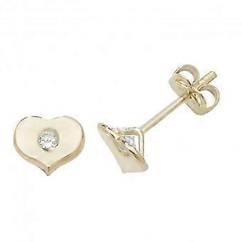 9ct Yellow Gold Heart With Single Zirconia Stud Earrings ES430