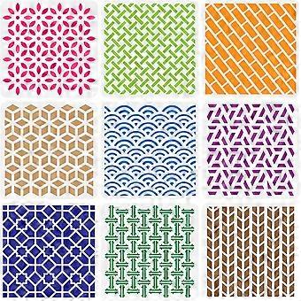 9PCS Geometric Pattern Plastic Drawing Templates 12x12 Inches Square Diamond Sector Stencil for Scrabooking Card Making DIY Wall Floor Decoration