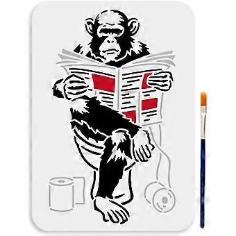 A4 Size Orangutan Banksy Reading Stencil 11.7x8.3inch Animal Theme Stencil Reusable Newspaper Paper Towel Painting Template Toilet PET Drawing Templat