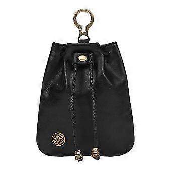 Leather Coin Pouch Keychain with Vintage Drawstring Closure for Keys Cards Medieval Belt Bag Black