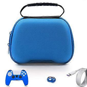 Hard Shell Case for PS5 Controller and Travel Bag for DualSense with Thumb Grip Caps Blue