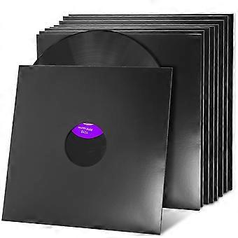 10PCS 12 Inch Vinyl Record Sleeves, 350gsm Heavyweight Cardboard LP Jackets with Center Hole, Glossy Black DustResistant AntiStatic Protection