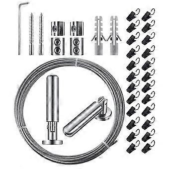 Curtain Wire Rod Kit with Adjustable Length and 304 Stainless Steel Clothesline for Indoor Outdoor Use