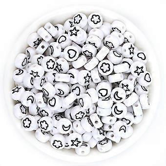 Acrylic Beads - Flat Round Pattern, Multicolor, Black On White, 7 Mm, DIY Geometric Spacer Beads, 100 Pcs