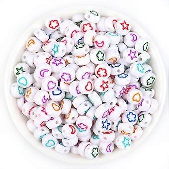 Acrylic Beads Multicolor Flat Round Pattern 7 mm Diameter DIY Beads for Geometric Spacer Beads White Background 100 Pack