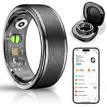 Smart Fitness Ring Stainless Steel IP68 Waterproof with Sleep Monitor Pedometer 20+ Sports Modes Black 13#22.3mm