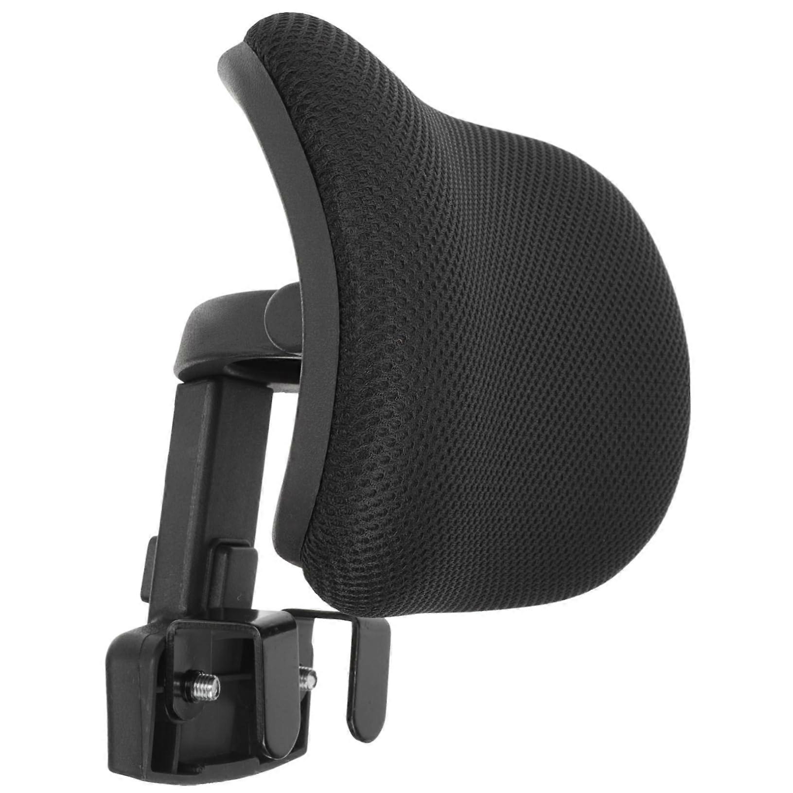 Adjustable headrest for office chairs, attachable and tiltable, ergonomically designed for neck and head support, install with clips.