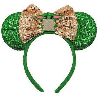 Glitter Mouse Ears Headband for Adults with Bow for Mandalorian, Stylish Unisex Costume Accessory for Disney Ref:4975