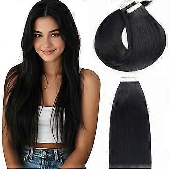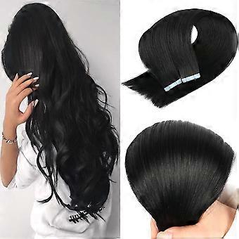 16 Inch Jet Black Tape in Hair Extensions Human Hair Straight Seamless Natural Blend Reusable