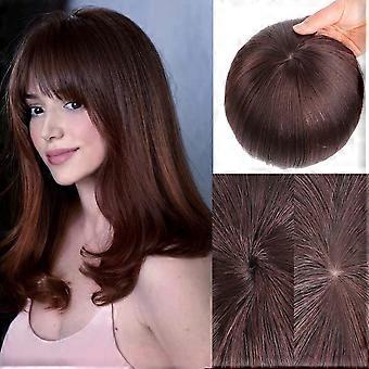 100% Human Hair Topper with Silk Base Clip In Wiglet Brown Straight Extension for Thinning Crown