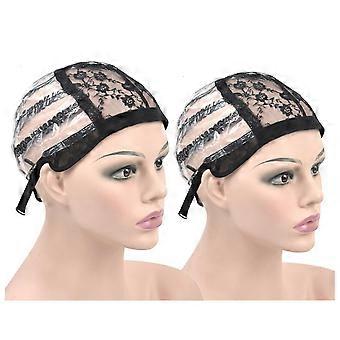 2 Pcs Medium Lace Wig Cap with Adjustable Strap, Breathable Black Net for Making Wigs 2122 Inch