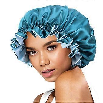 Reversible Satin Sleep Cap for Women Teal Bonnet with Elastic Adjustable Fit for All Hair Types