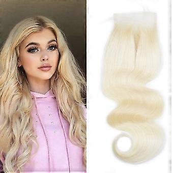 613 Blonde Brazilian Body Wave 4x4 Lace Closure 22 Inch Middle Part Human Hair Preplucked Baby Hair