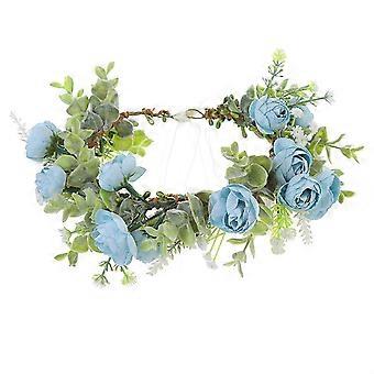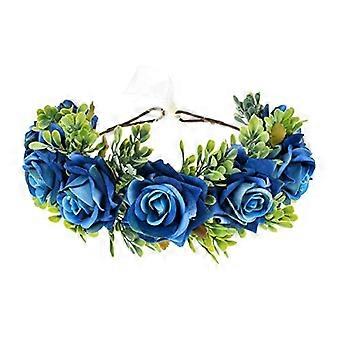 Blue Flower Crown with Adjustable Ribbon for Wedding Floral Headband and Festival Wear