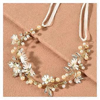 Bridal Headband with Handmade Floral Design and Adjustable Ribbon for Wedding Bride