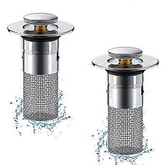 Bathroom Sink Drain Stopper Hair Catcher, 2 in 1 Pop Up Strainer with Removable Basket, Stainless Steel Universal Fit, 2 Pack