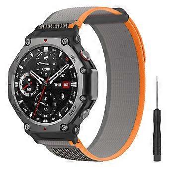Nylon Watch Band with Secure Velcro, Breathable Replacement Strap Grey Orange for Amazfit TRex 3
