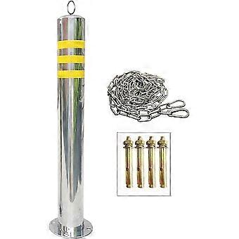 Stainless Steel Safety Bollard with Warning Chain, Reflective Parking Barrier Post 800x89mm