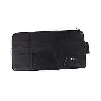 Car Sun Visor Organizer PU Leather Storage Bag with Zipper for Cards Documents Photos Black