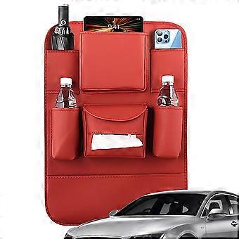 Leather Car Back Seat Organizer with Multiple Compartments, Kick Mats Protector, Red for Trucks