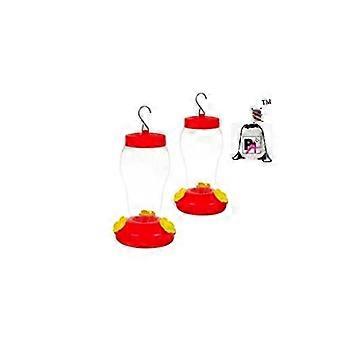 Set of 2 Hanging Hummingbird Feeders Wide Mouth Easy Fill Red and Clear for Garden or Patio