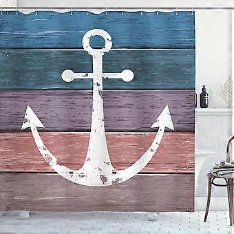 Anchor Shower Curtain Nautical Rustic Marine Symbol Print Wood Planks Cloth Bath Decor Set With Hooks 70-Inch Pink Blue