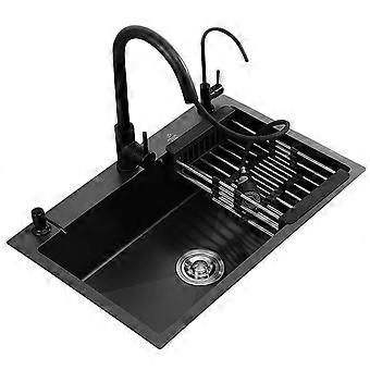 Stainless Steel Kitchen Double Sink, Black, 82 x 45 x 20 cm, Three-Hole Nano Design, Includes 8 Accessories