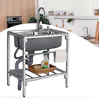 Commercial Kitchen Sink Freestanding Single Bowl Stainless Steel with Faucet Double Storage Shelves