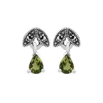 Art Nouveau Style Pear Peridot & Marcasite Drop Earrings in 925 Sterling Silver 214E686107925