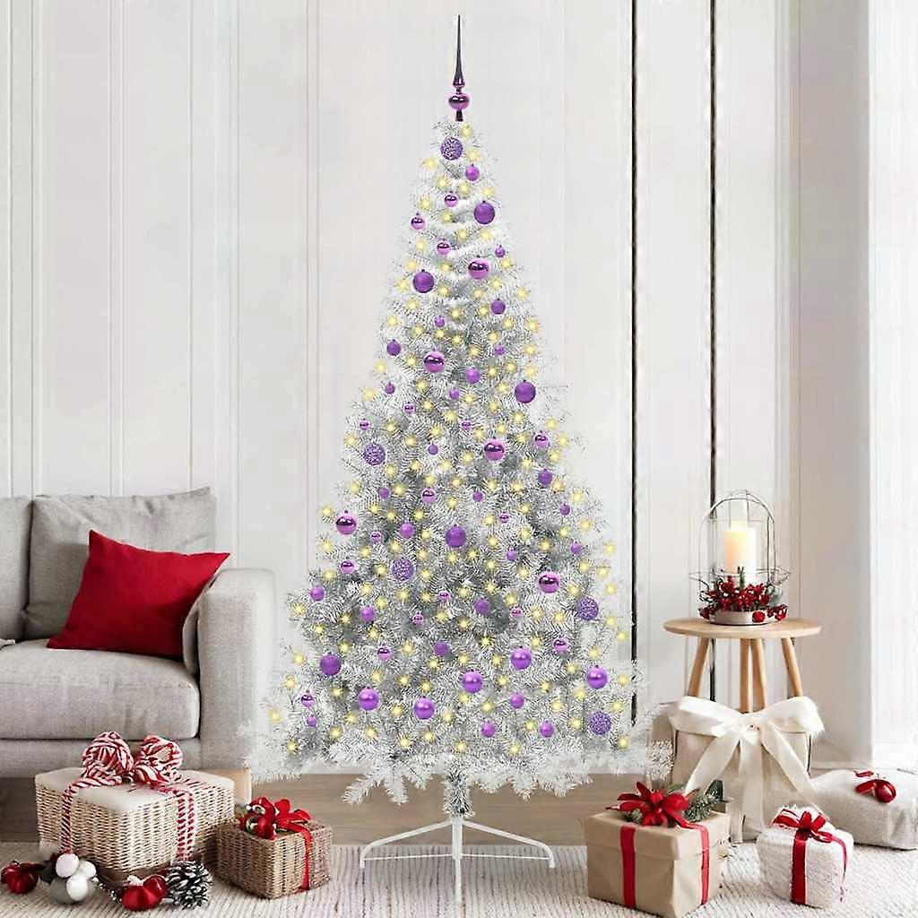 Künstlicher vorbeleuchteter Weihnachtsbaum Silber 210 cm
