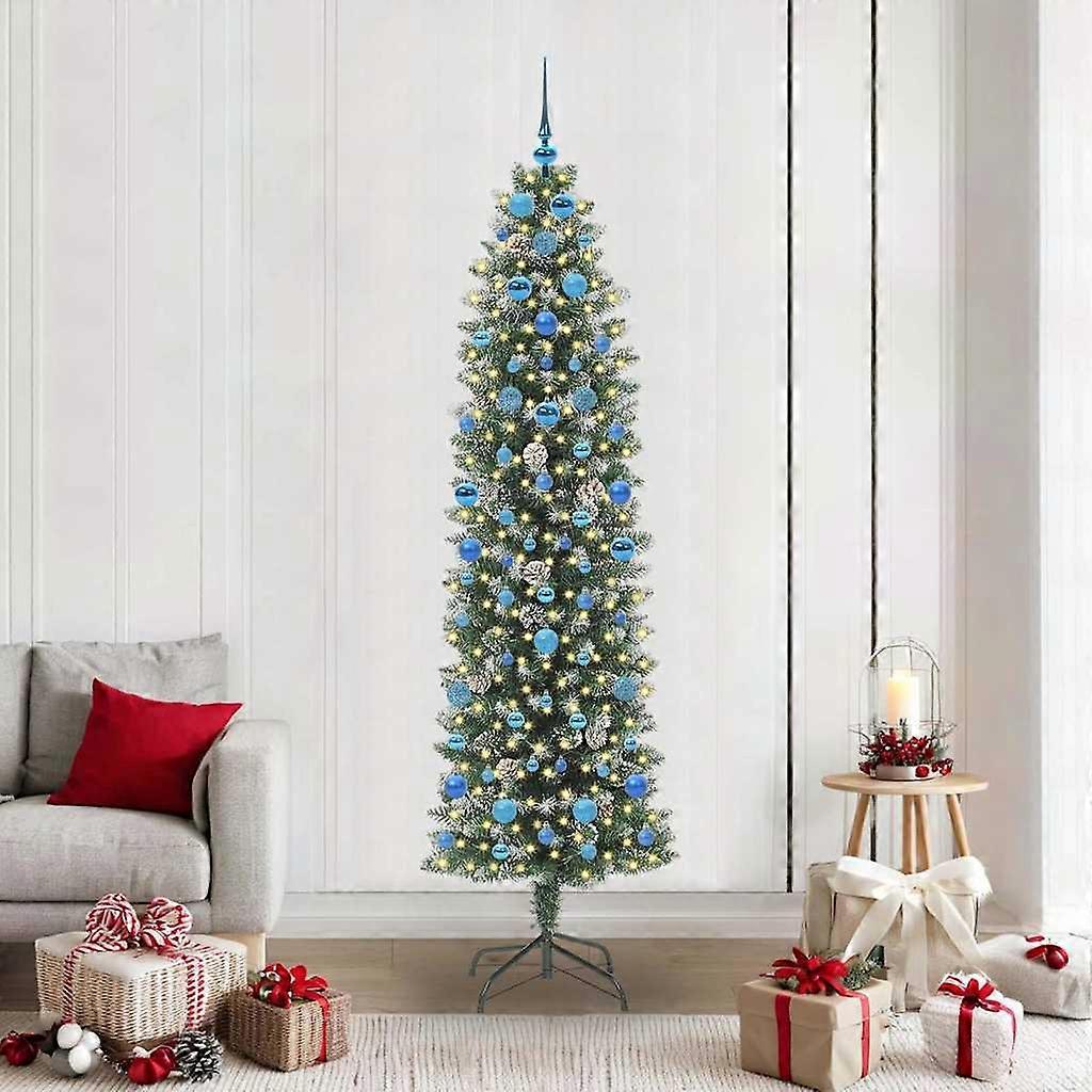 Künstlicher schlanker Weihnachtsbaum Grün und Weiß 210 cm