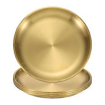 Gold Stainless Steel Dinner Plates Set of 4, 5.5 Inch Round Durable Metal Dessert and Salad Plates