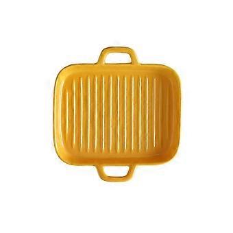 Ceramic Dinner Plates with Handles, Heat Resistant Rectangular Porcelain for Steak, Sushi and Desserts