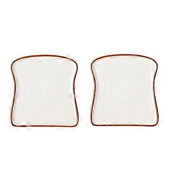 Ceramic Bread Plate Set with Playful Toast Shape, Handmade Cartoon Design, Microwave Safe, Brown