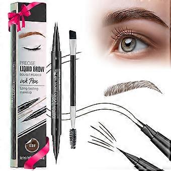 Zephoco Honey Brown Double Fork Liquid Eyebrow Pencil Daily Brow Style Three-Dimensional Color Rendering Easy To Use Long-Lasting Silky Eyebrow Pencil