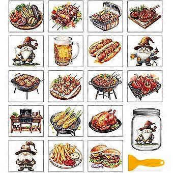 18 Sheets Barbecue Foods Rub on Transfers for Crafts Cooking Gnome Waterproof UV DTF Cup Wraps Beer Hamburger Decals Stickers for Water Glass Bottle V