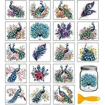 18 Sheets Peacock Flowers Transfer Stickers 3.9x3.6inch Animals Colorful Transfer Decal Rub on Transfer for Cup Decal Vase Glass Art Crafts Decoration