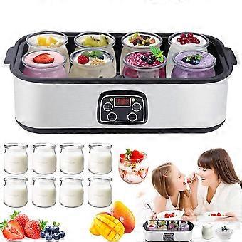 Automatic Yogurt Maker 1.4L With 8 Glass Cups Stainless Steel 2055C Temperature 148H Timer LCD Display