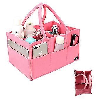Baby Nappy Felt Bag Large Nappy Organiser With Interchangeable Compartments Pink For Changing Table Teething Ring